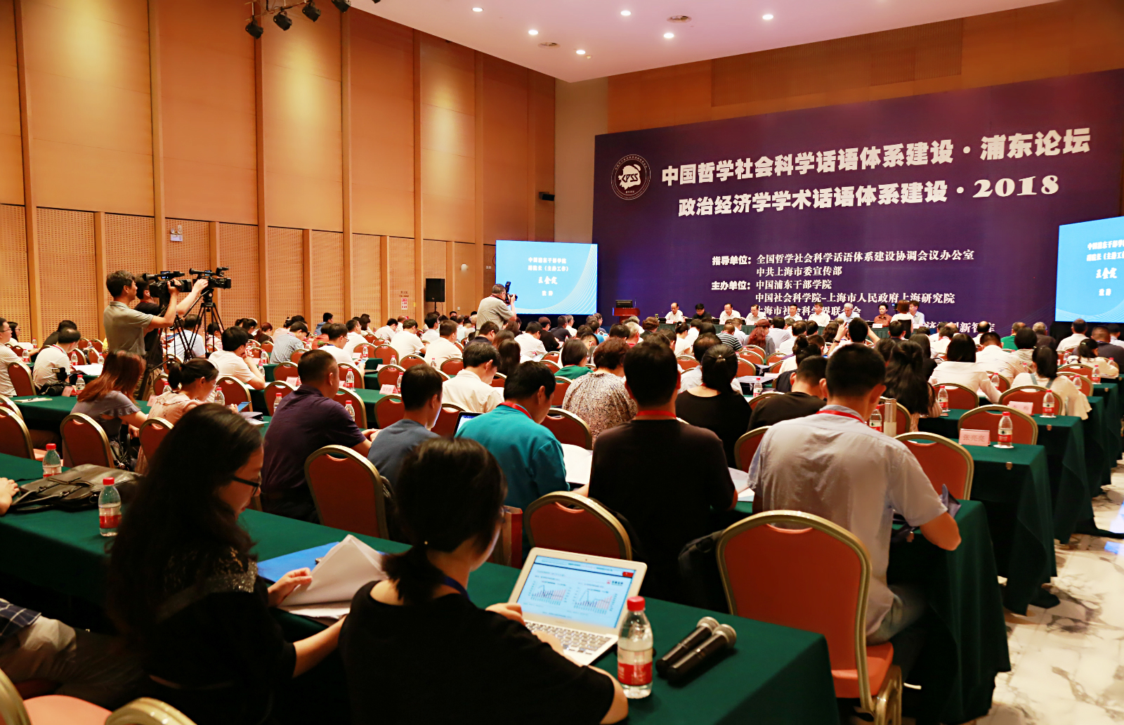 7月20日,由全国哲学社会科学话语体系建设协调办公室与上海市委宣传部指导,中国浦东干部学院、中国社会科学院-上海市人民政府上海研究院、上海市社会科学界联合会共同主办,中国社科院当代中国马克思主义政治经济学创新智库、复旦大学经济学院协办的“中国哲学社会科学话语体系建设•浦东论坛”——“政治经济学学术话语体系建设•2018”在中国浦东干部学院召开。中国社会科学院副院长、党组成员、学部委员、经济研究所所长高培勇,中共上海市委宣传部副部长、上海市社会科学界联合会党组书记、专职副主席燕爽,中国浦东干部学院副院长(主持工作)王金定出席论坛并致辞。中国社会科学院经济研究所党委书记王立胜主持论坛开幕式。上海研究院第一副院长李友梅出席论坛活动。